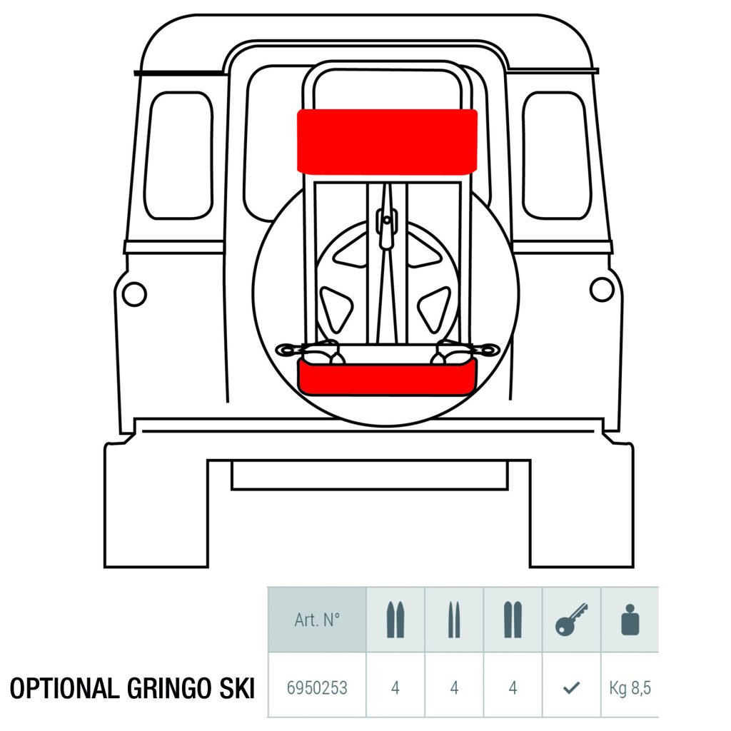 - Skiträger Gringo für Geländefahrzeuge mit Reserverad am Heck